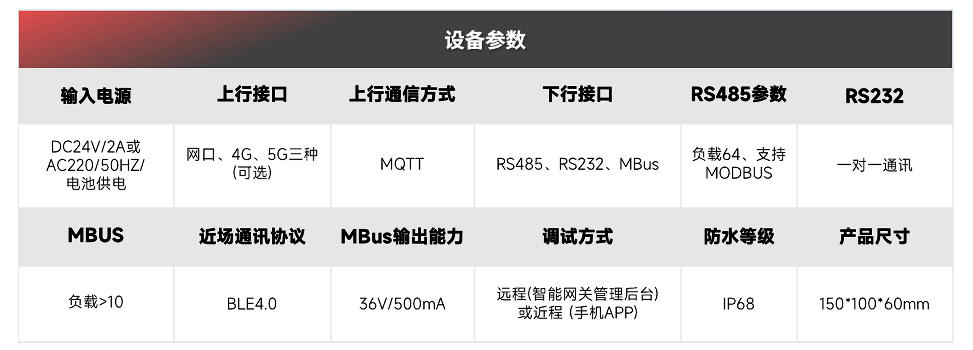 对接平台的方式有网口、4G、5G多种方式,对接底层终端时有RS485、MBUS、双MBUS等多种接口。