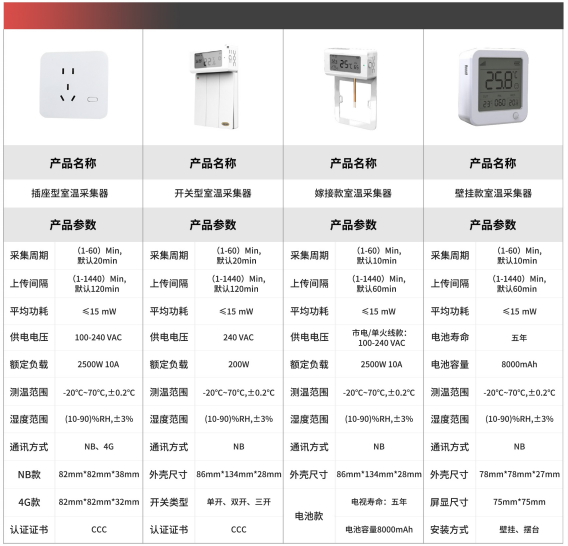 灵活适配需求:产品形式多样,支持多种通讯模式,具有低功耗、高稳定性和安装便捷等特点,可满足家庭、办公等不同场所的室温监测需求。